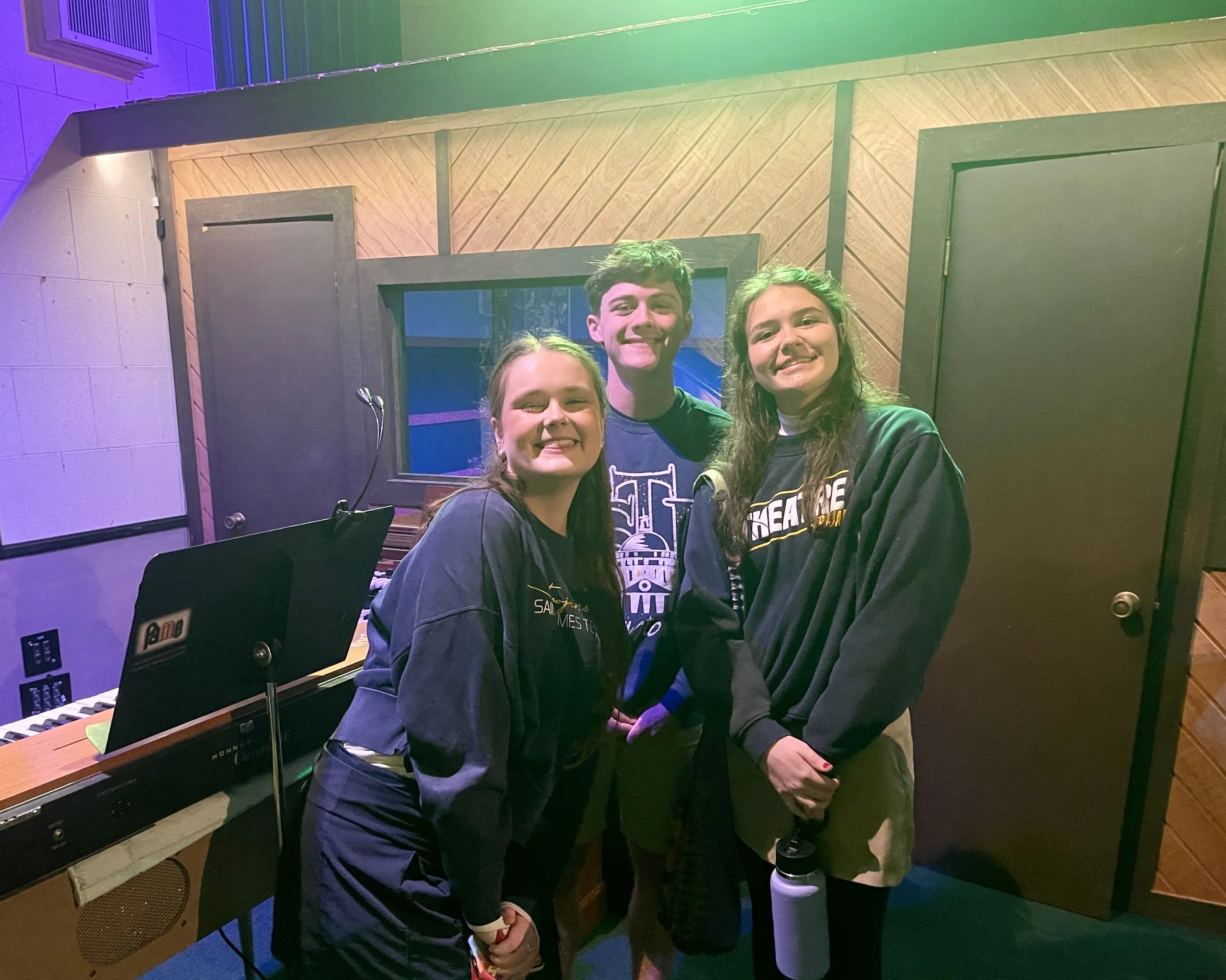 Haley (left) and classmates at the world-famous FAME music studios.